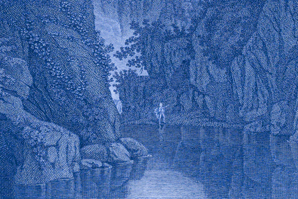 This print captures a moment from the myth of Echo and Narcissus, drawn from Ovid’s Metamorphoses.